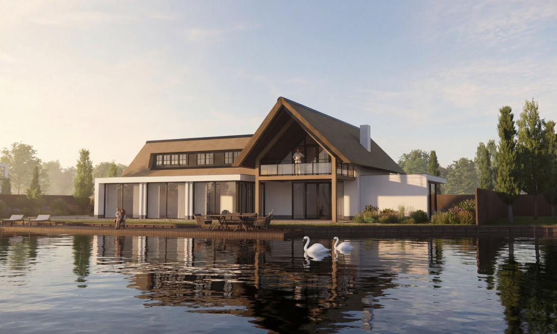 Blauwdruk verzorgde het ontwerp en de uitwerking voor een grootschalige verbouwing en uitbreiding van een villa in Leimuiden. De woning is gelegen langs de Drecht. De bestaande woning wordt getransformeerd tot een nieuwbouw villa.
